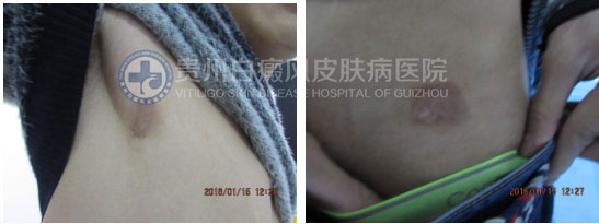 经过3次治疗后,张龙腋下的白斑已经完全消失,肚子上也只剩下一点白点,后期经过一段时间巩固和抗复发治疗,白斑将清除。