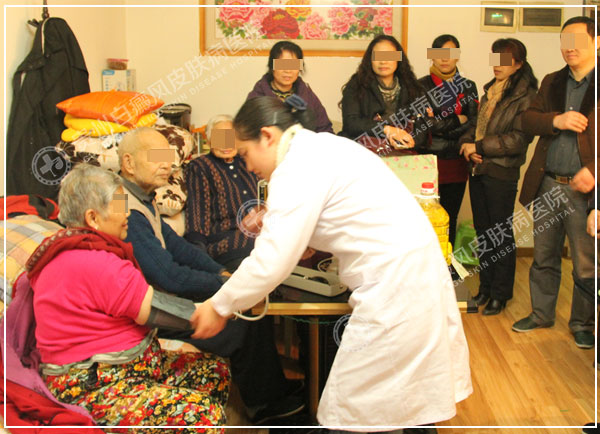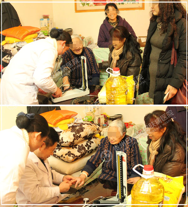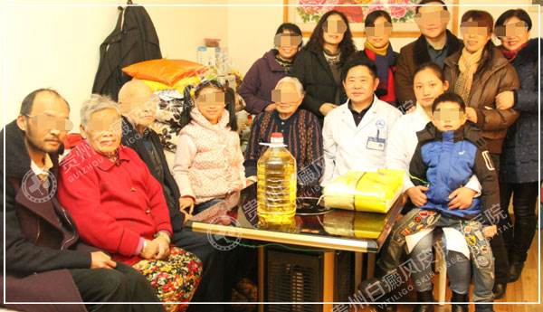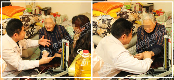 看望的第一位老人已达98岁高龄,据老人儿媳描述,公公与其生活多年,身体硬朗,但听力方面不是特别灵敏。贵州白癜风皮肤病医院李顺柏主任亲切的询问了老人的健康情况,并为其进行了健康检查和生活指导。看到医生为自己详细的做检查和贴心关怀,老人十分感动,满是感谢。能够得到社区和医院的关心,老人一家人非常开心。